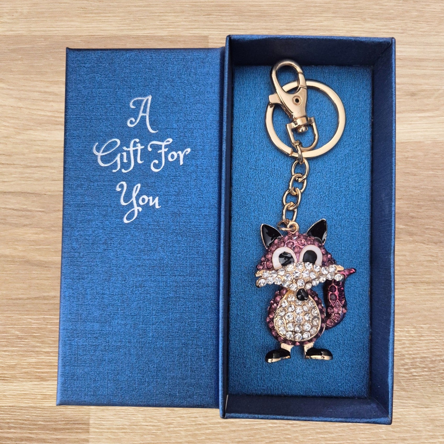 Crafted by hand, it features a gold metal finish adorned with colorful rhinestones, secured by a sturdy keyring and bag clip. Measuring 12 cm in length with the fox itself at 3.5 x 5.5 cm, it arrives presented in our signature blue "A GIFT FOR YOU" box 6 x 14 cm.
