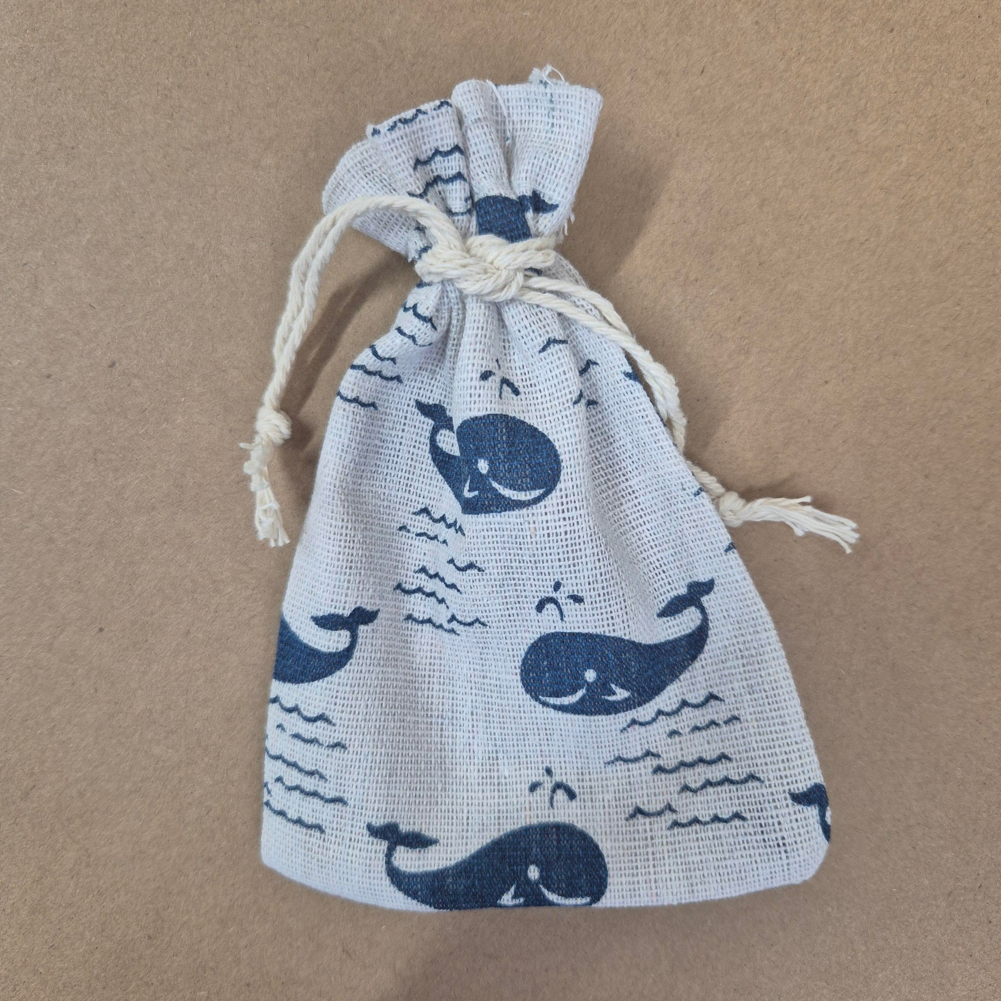 Cute whale design cotton organza gift bag. Perfect for small jewellery, keychains and other small gifts.