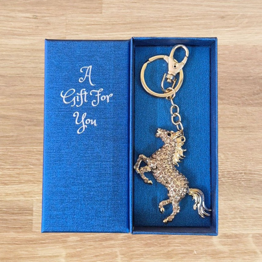 Horse Keychain Boxed Gift | Gold Brown Horse Keyring Bag Chain | Horse Lover Gift